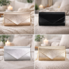 Bolso de evento con acabado metálico y cadena larga para llevar al hombro o cruzado. Perfecto para completar looks de fiesta.