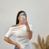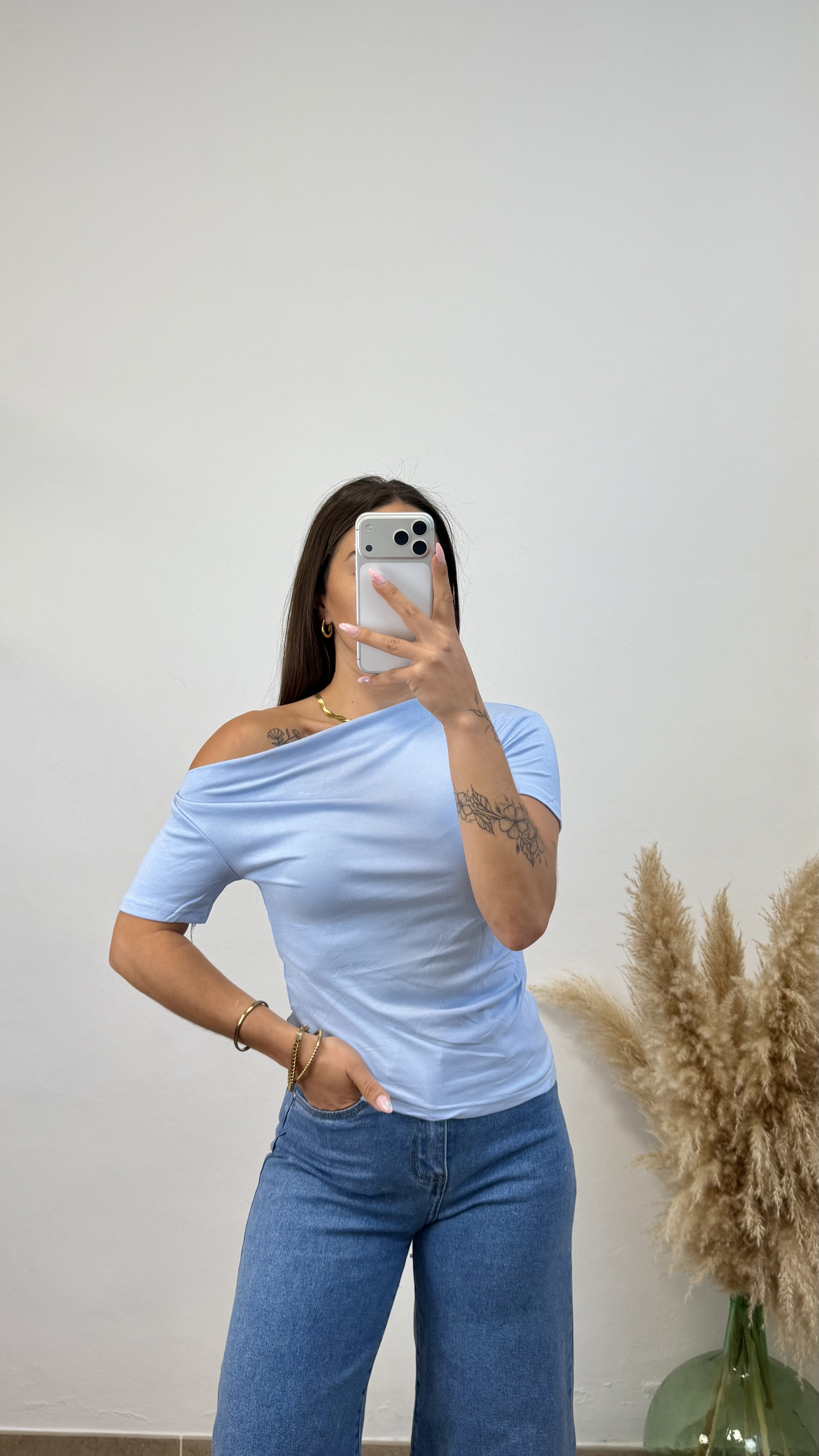 Camiseta asimetrica manga corta- Celeste