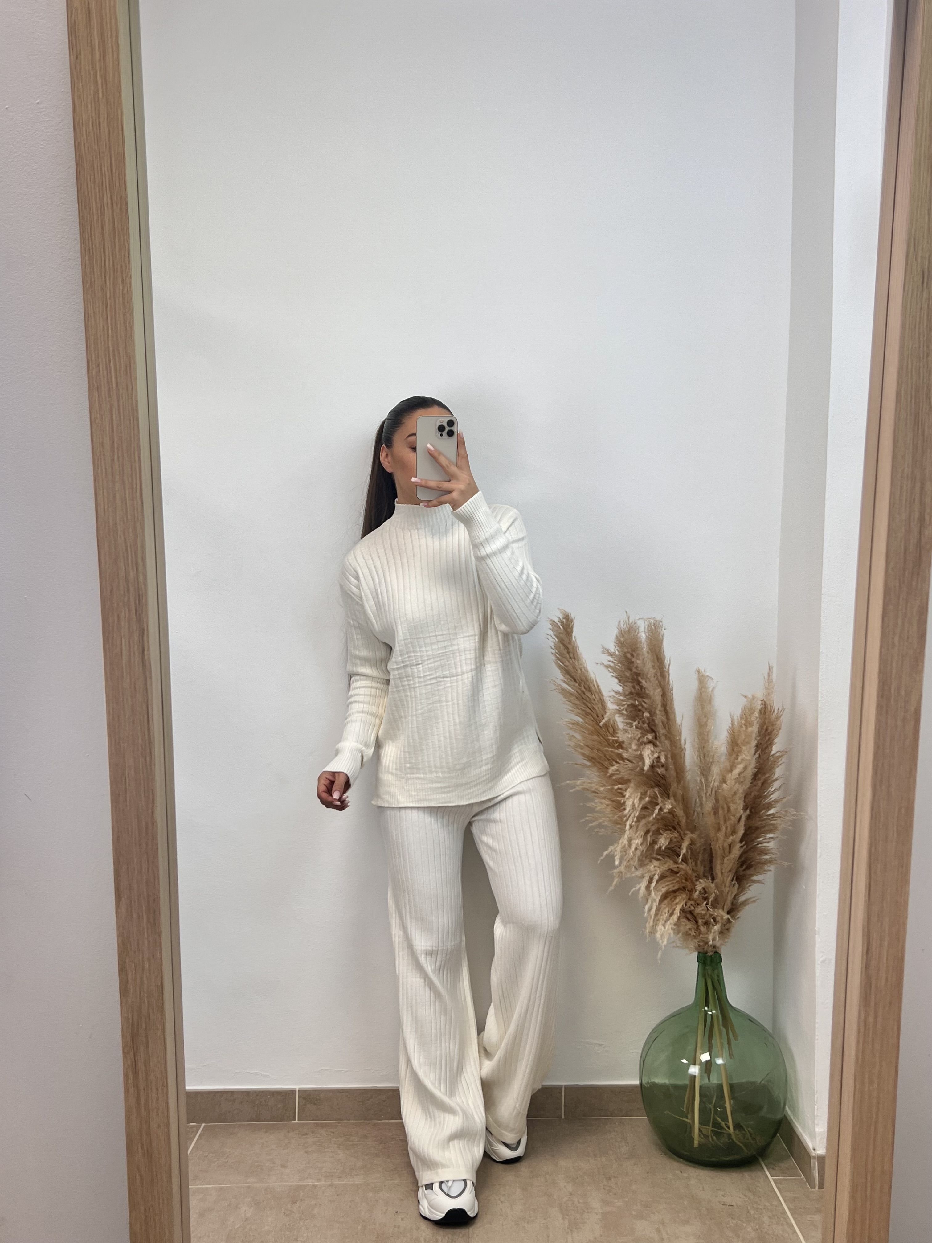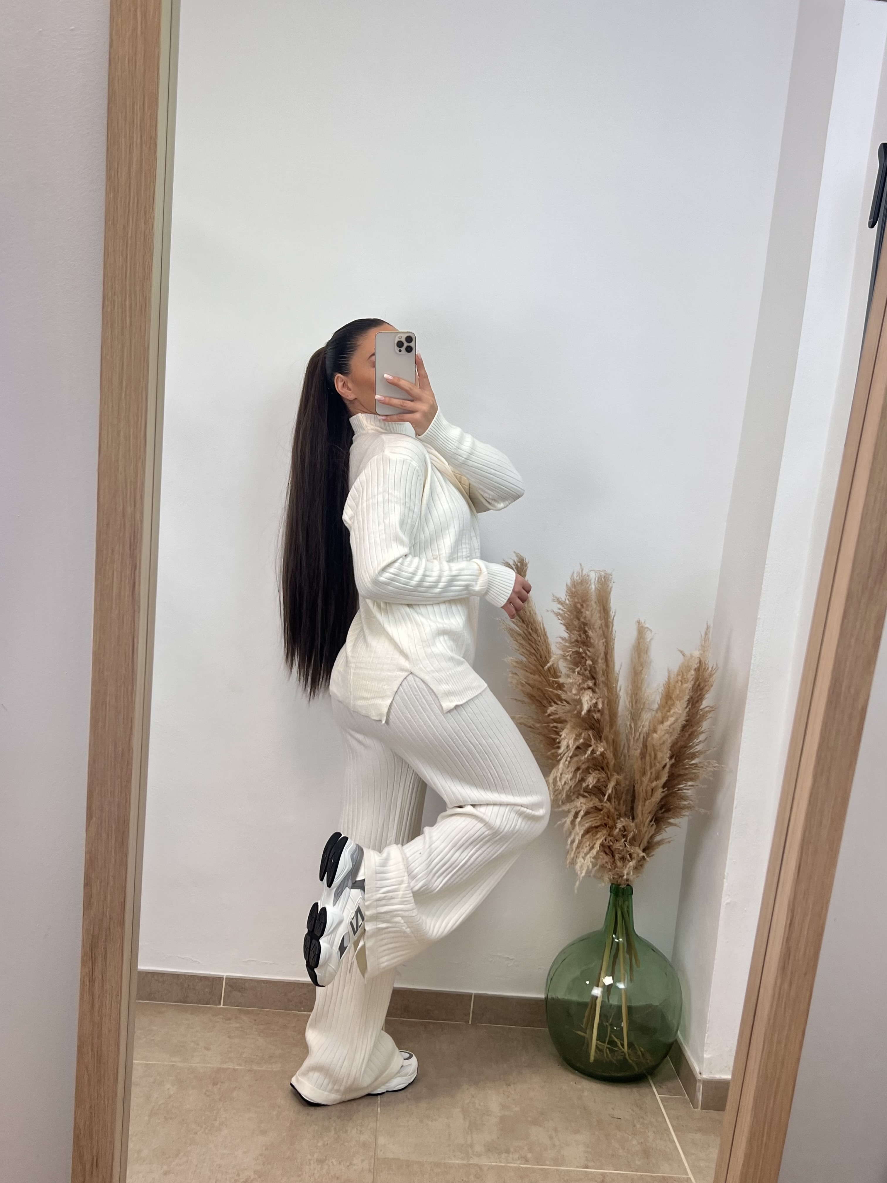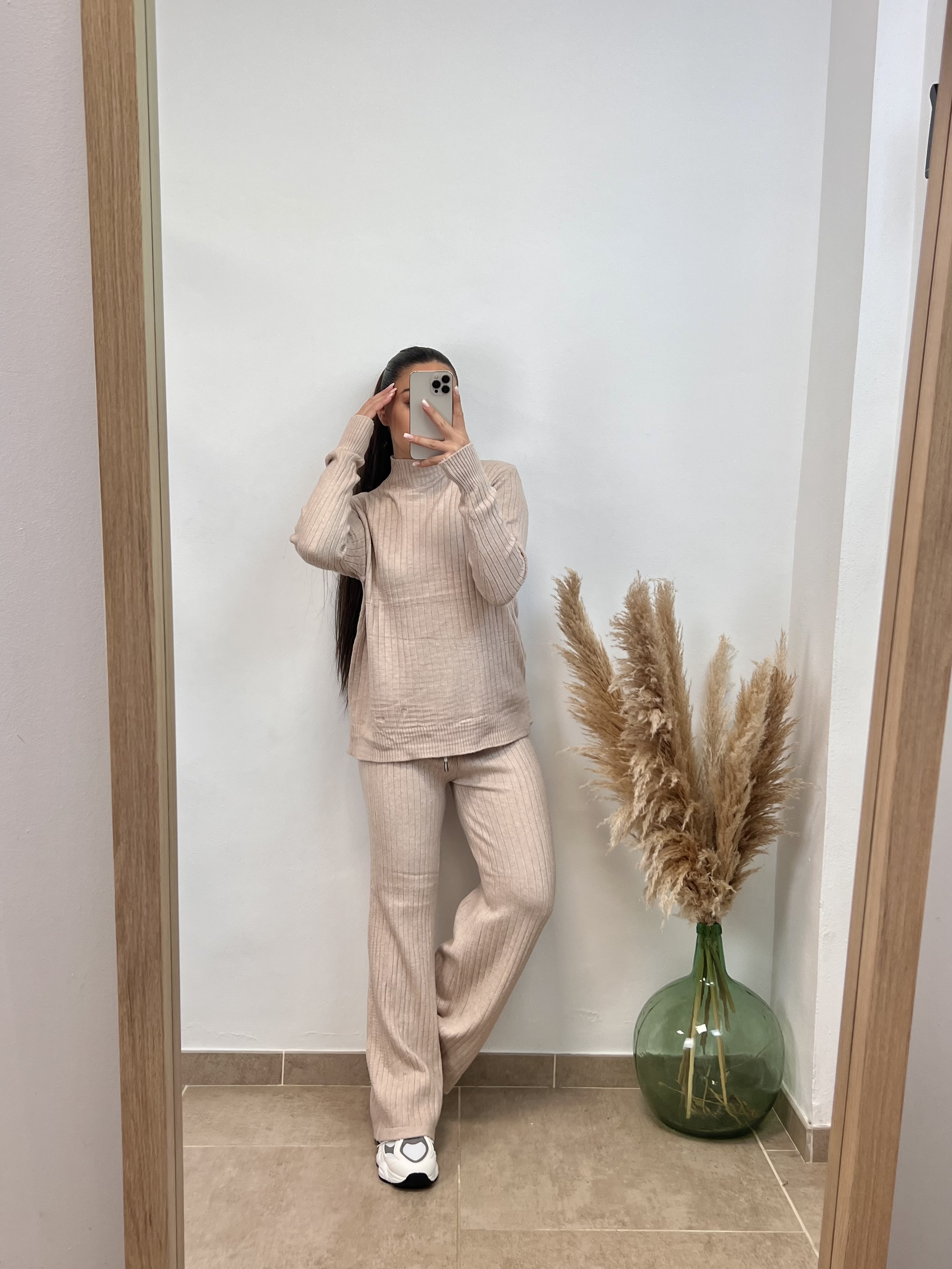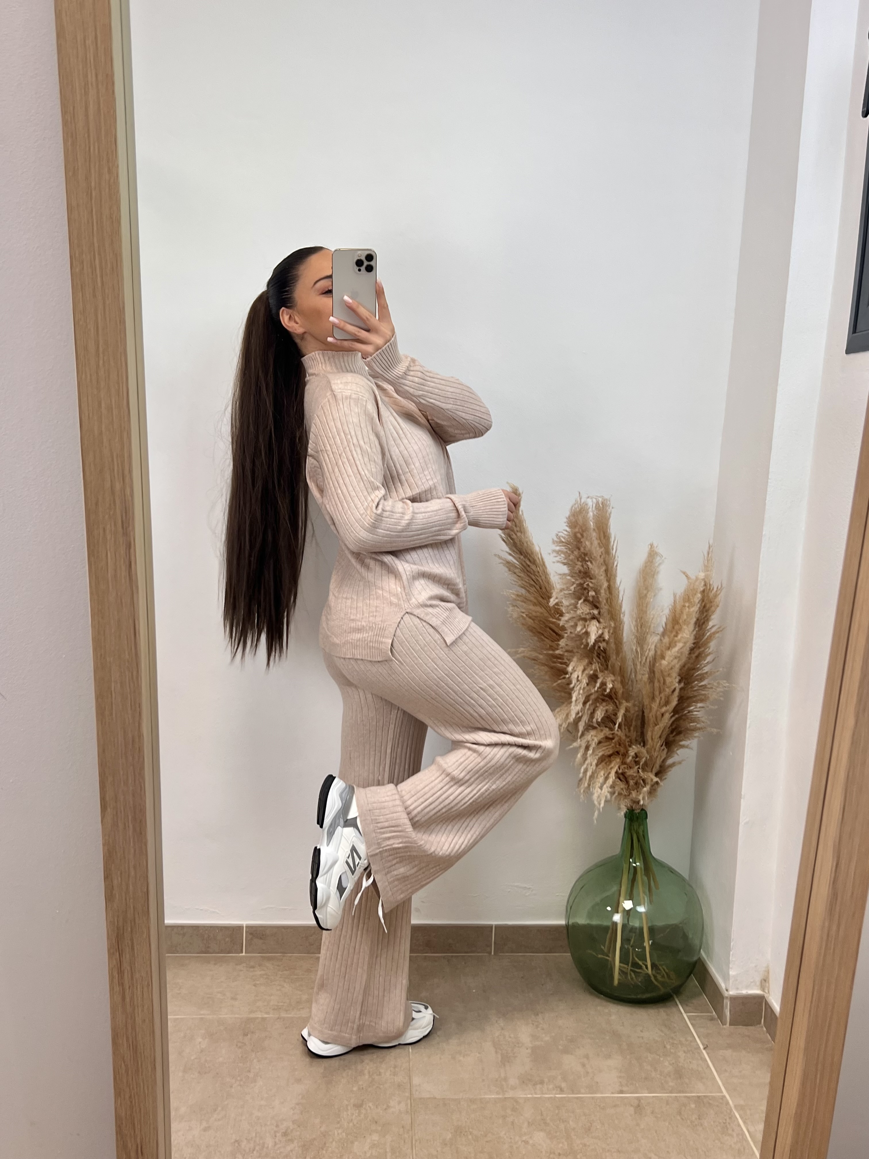 El pantalón es largo, Coral mide 1,59cmy le arrastra.