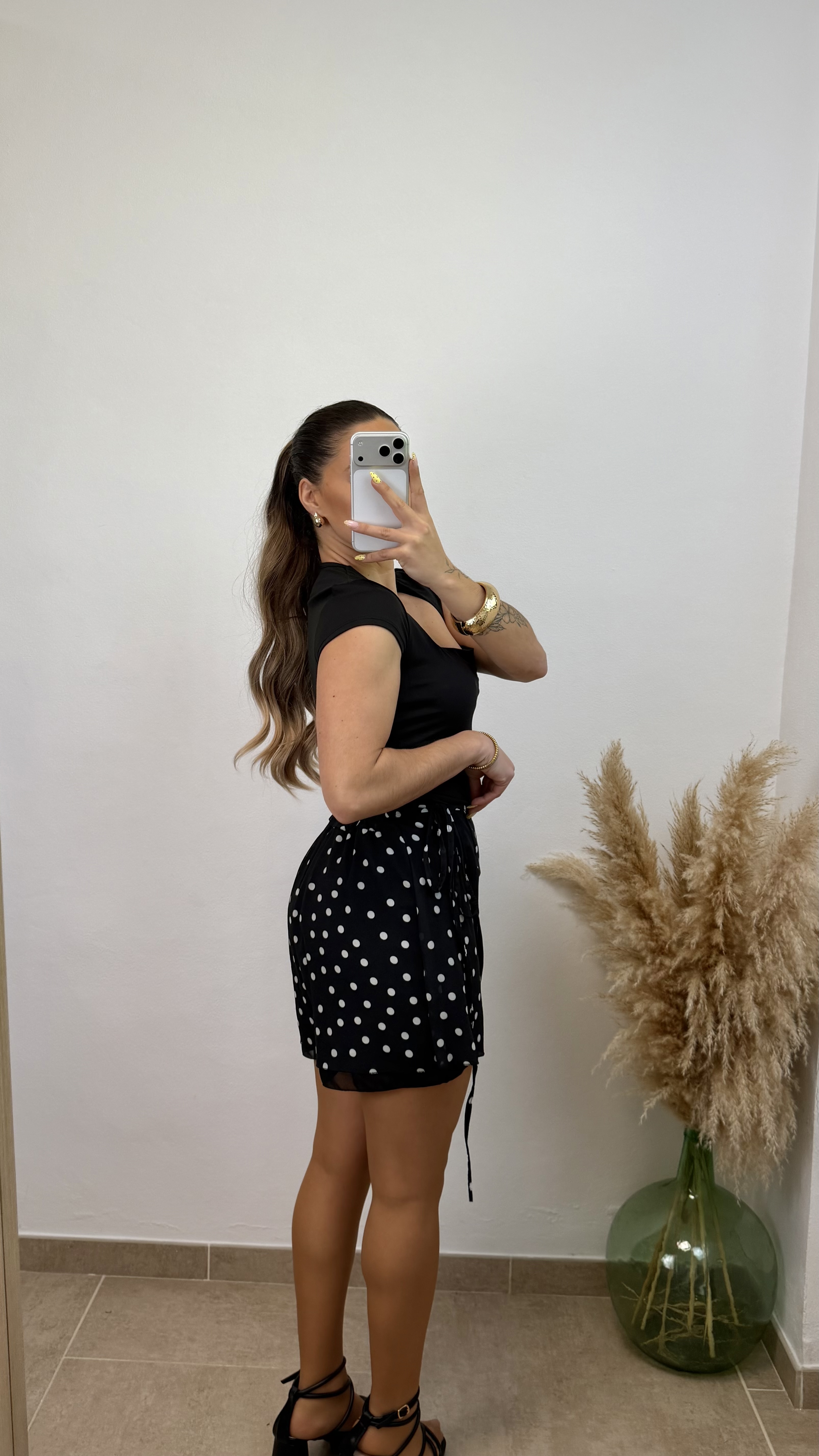 Falda pantalón lunar – Taupé con lunar chocolate