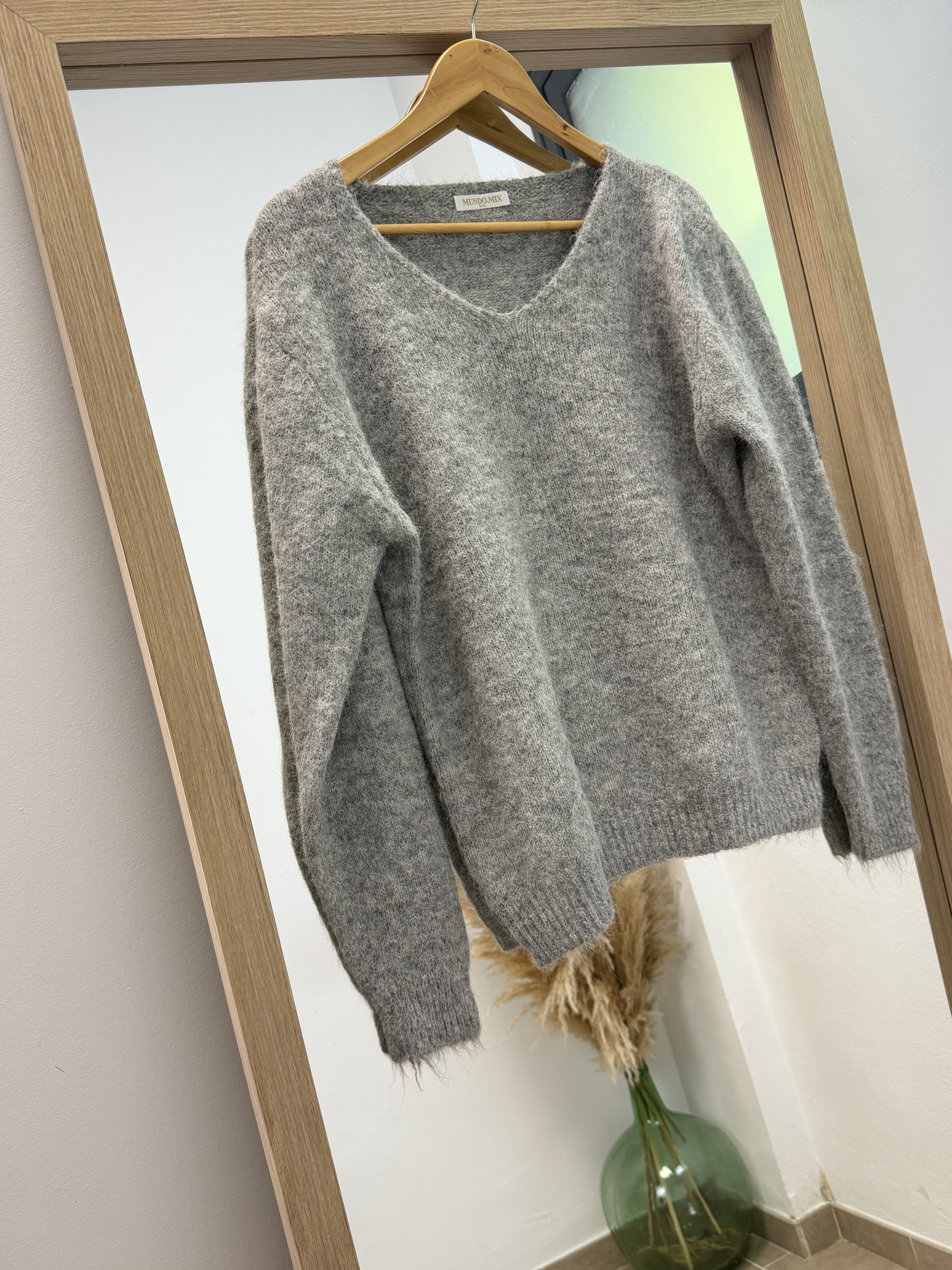 Jersey Bruselas cuello de pico I Gris I OK816