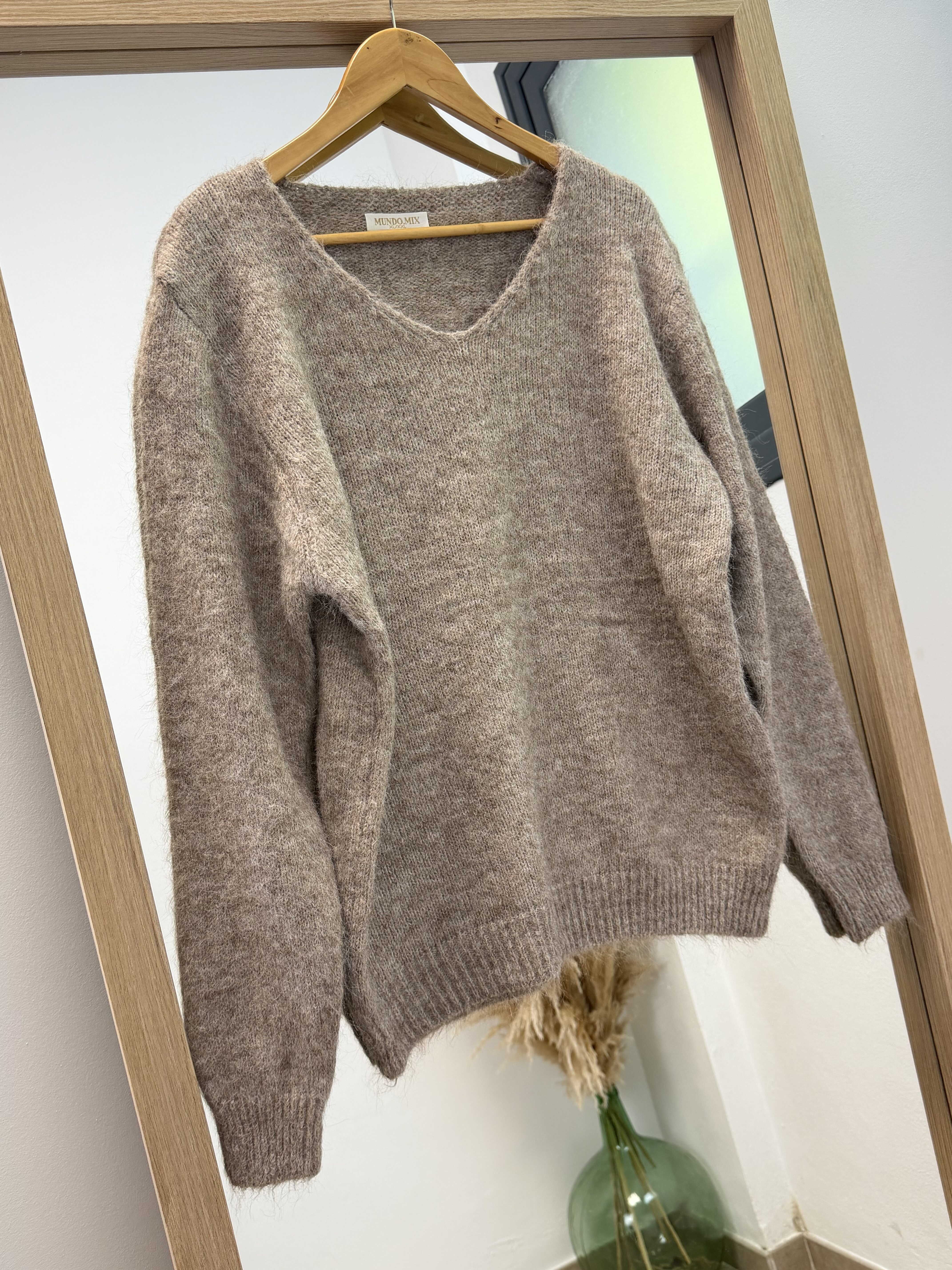Jersey Bruselas cuello de pico I Taupe I OK816