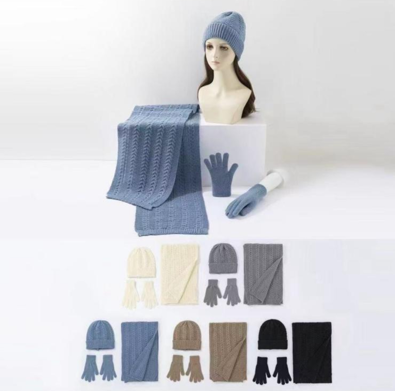 Pack bufanda+gorro+guantes trenzados I QA15