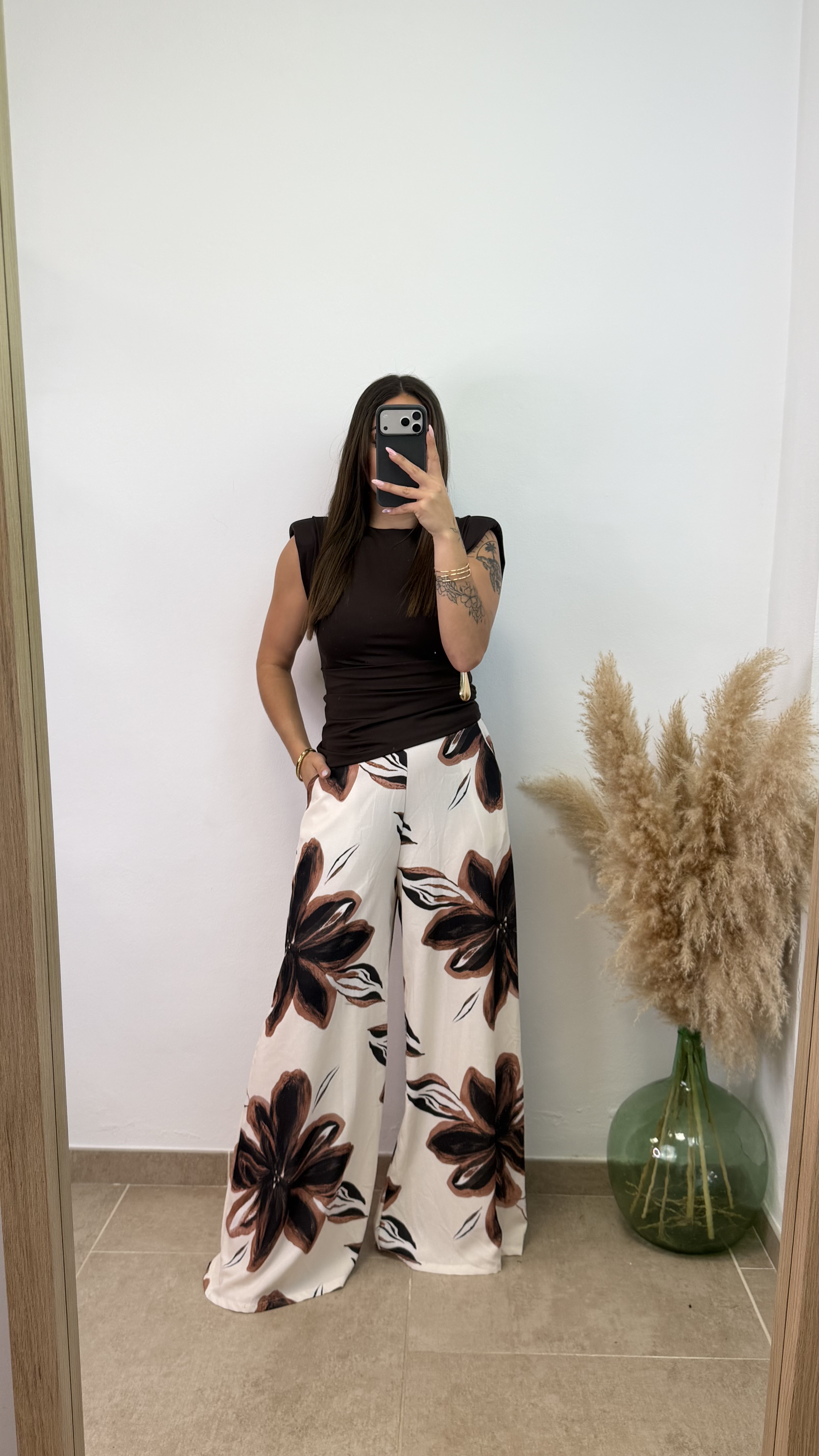 Pantalón flor palazo – Beige