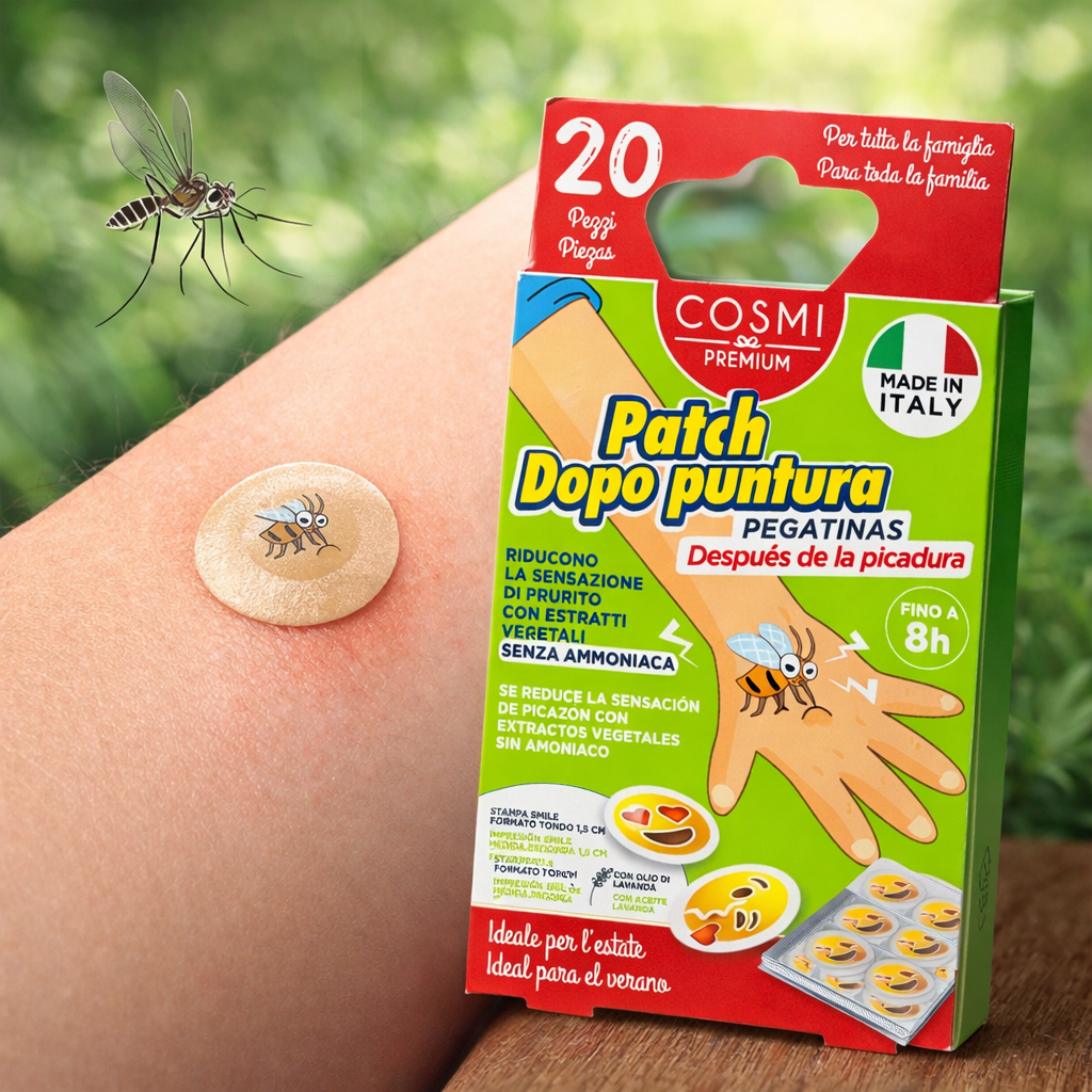 Los Parches Post Picadura Cosmi Premium están diseñados para aliviar al instante las molestias causadas por picaduras de insectos como mosquitos.