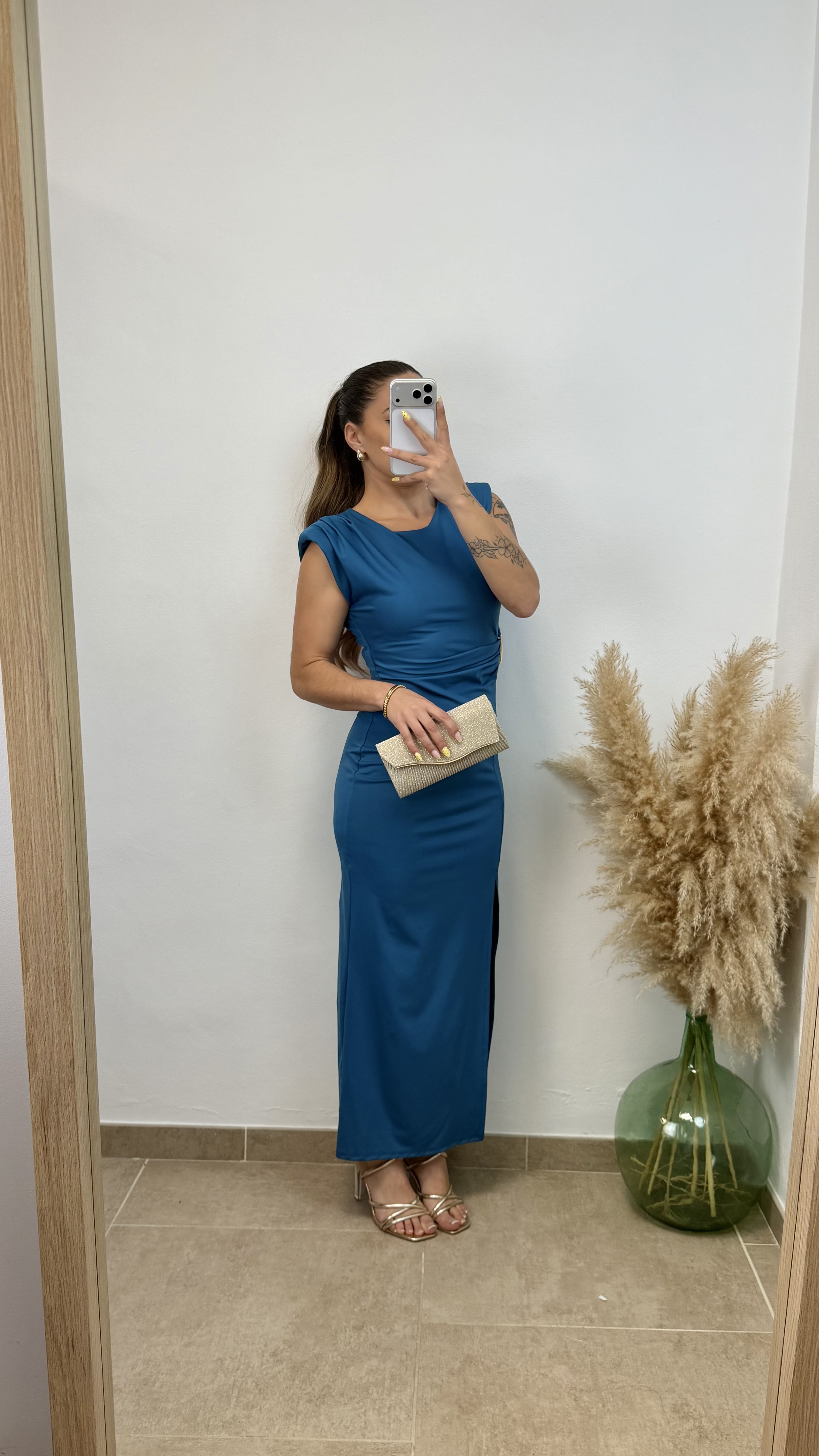 Vestido confeccionado en tejido de licra elástica, muy cómodo y favorecedor. Lleva hombreras, lo que aporta estructura al vestido y estiliza mucho la figura.