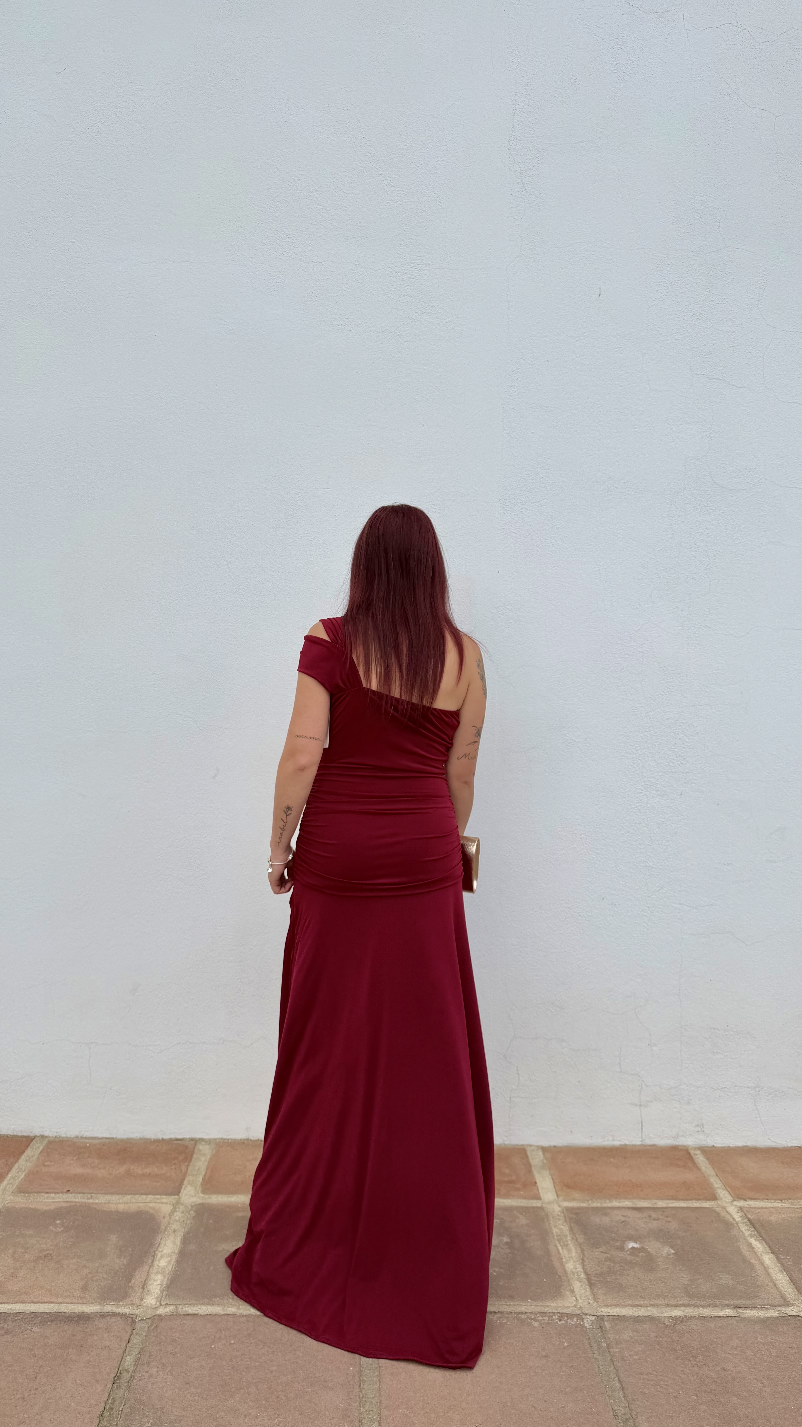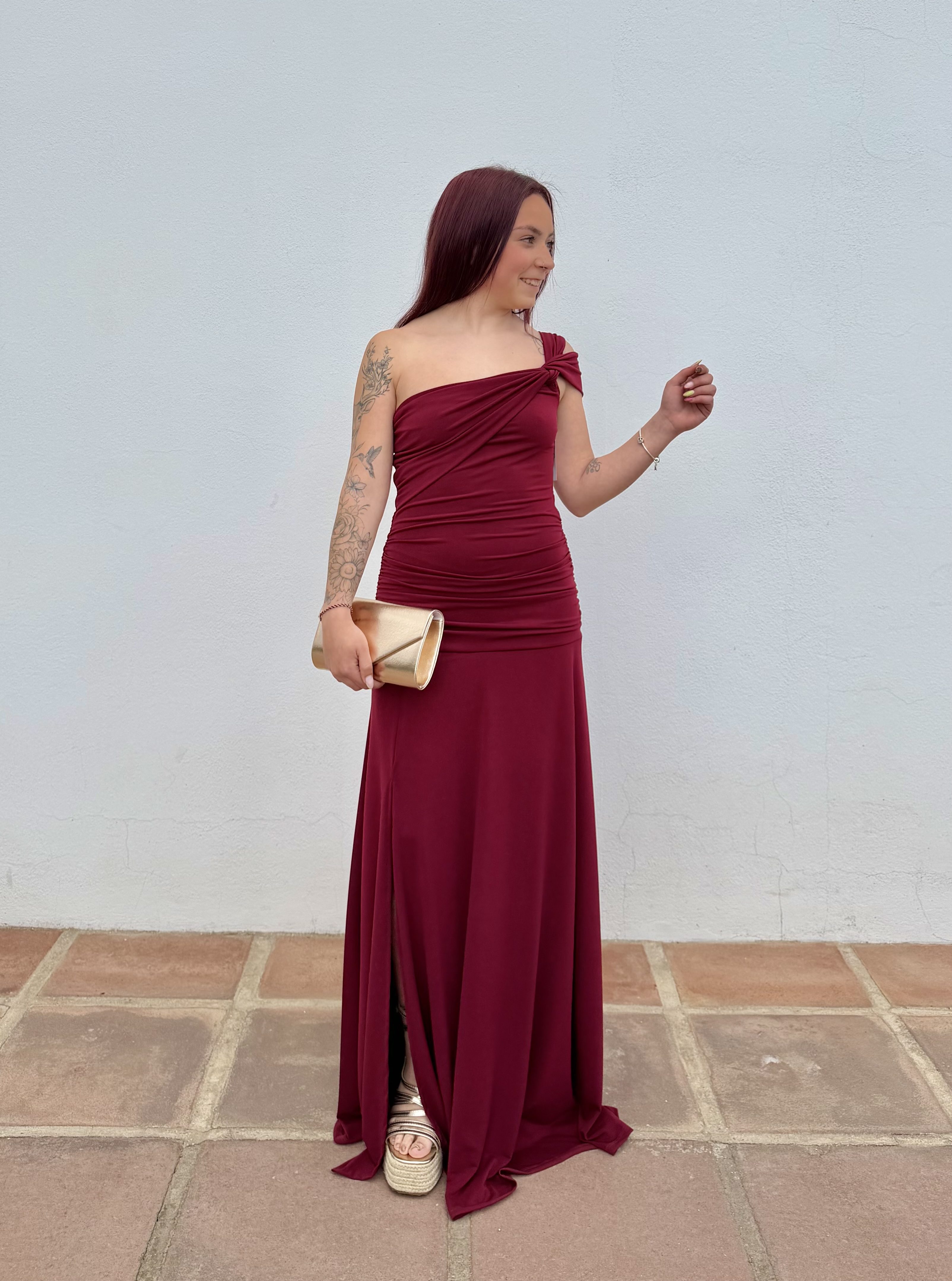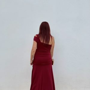 Vestido asimétrico, elástico y cómodo. Se adapta bien al cuerpo.
