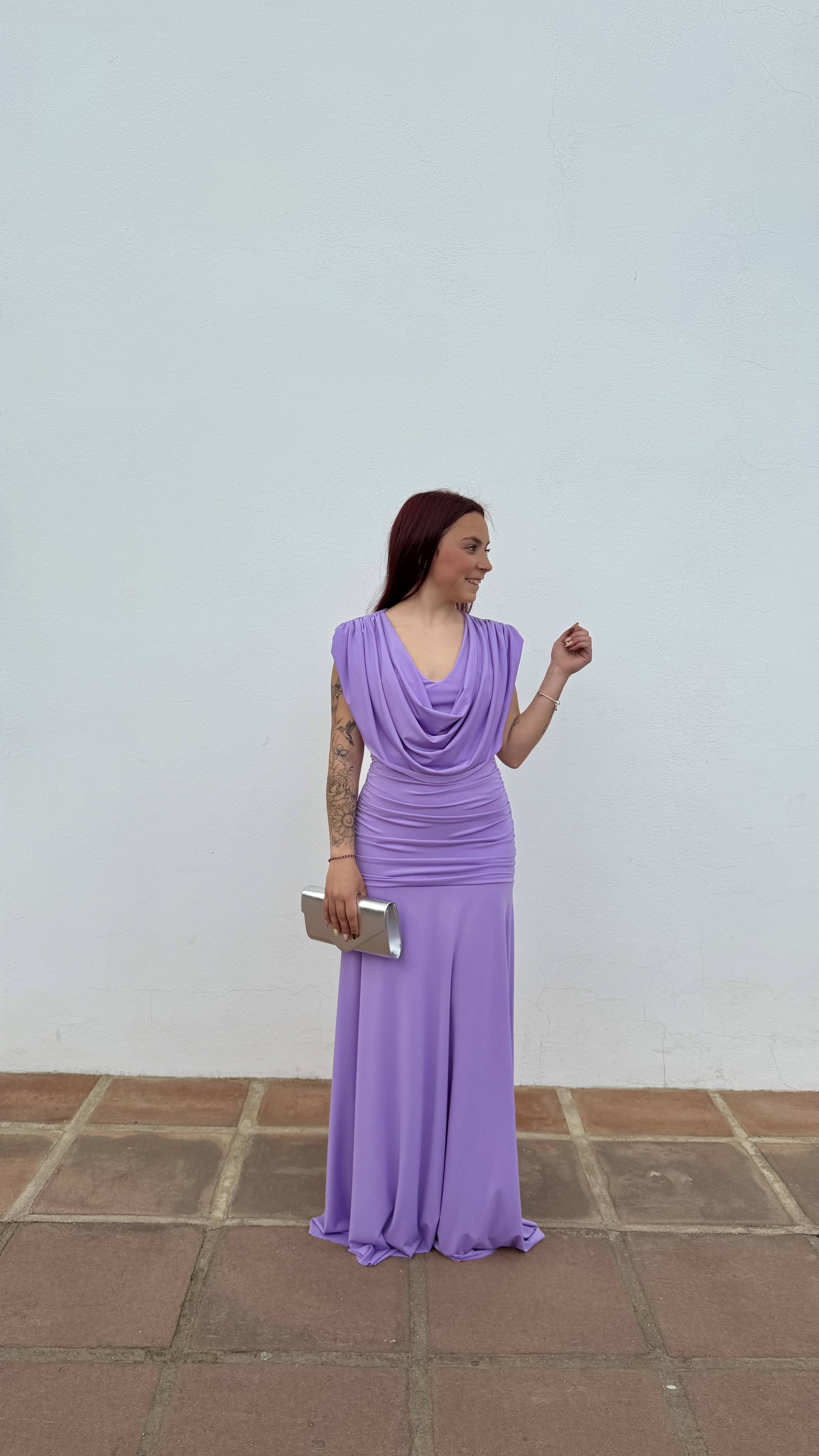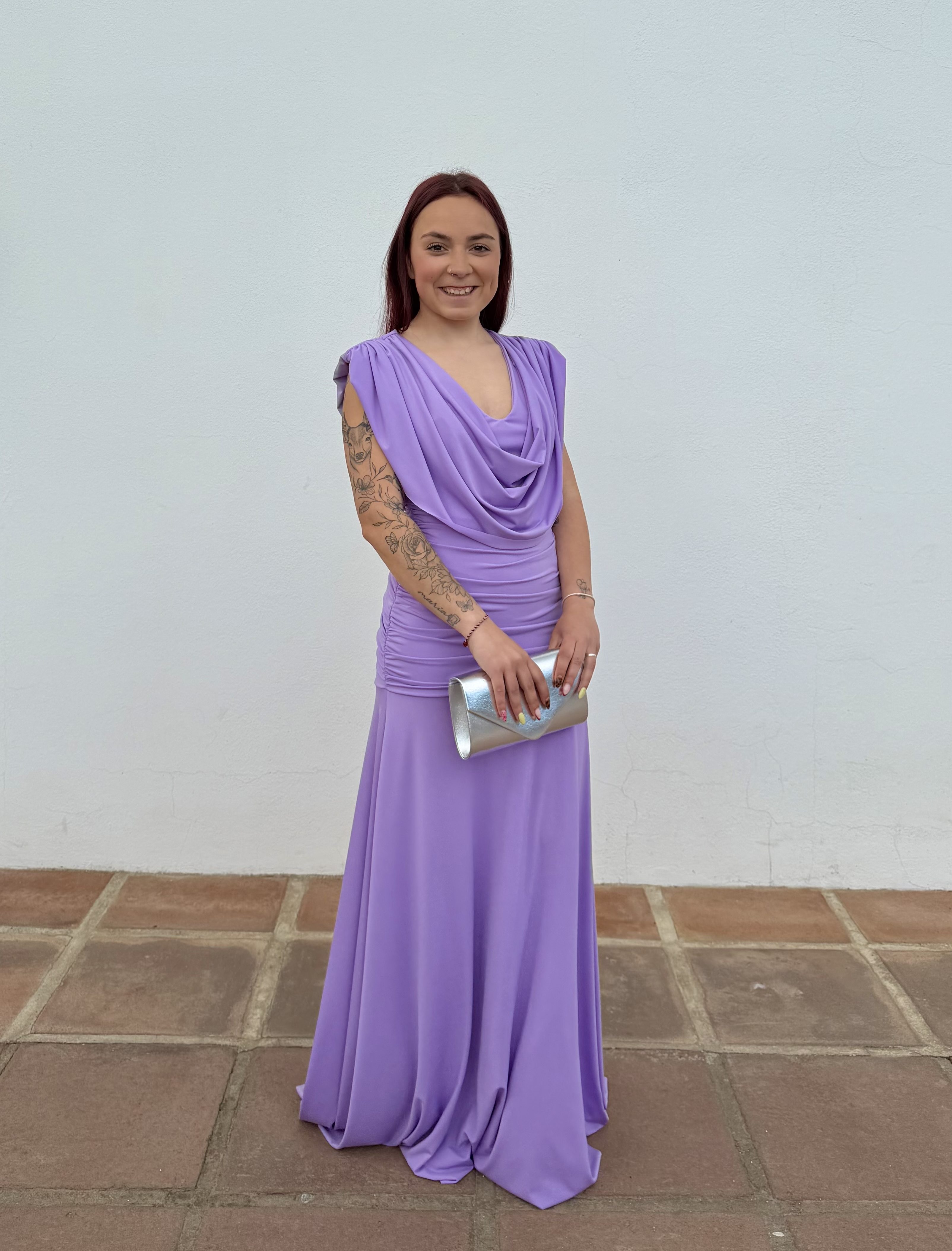 Vestido cuello caído - Lila