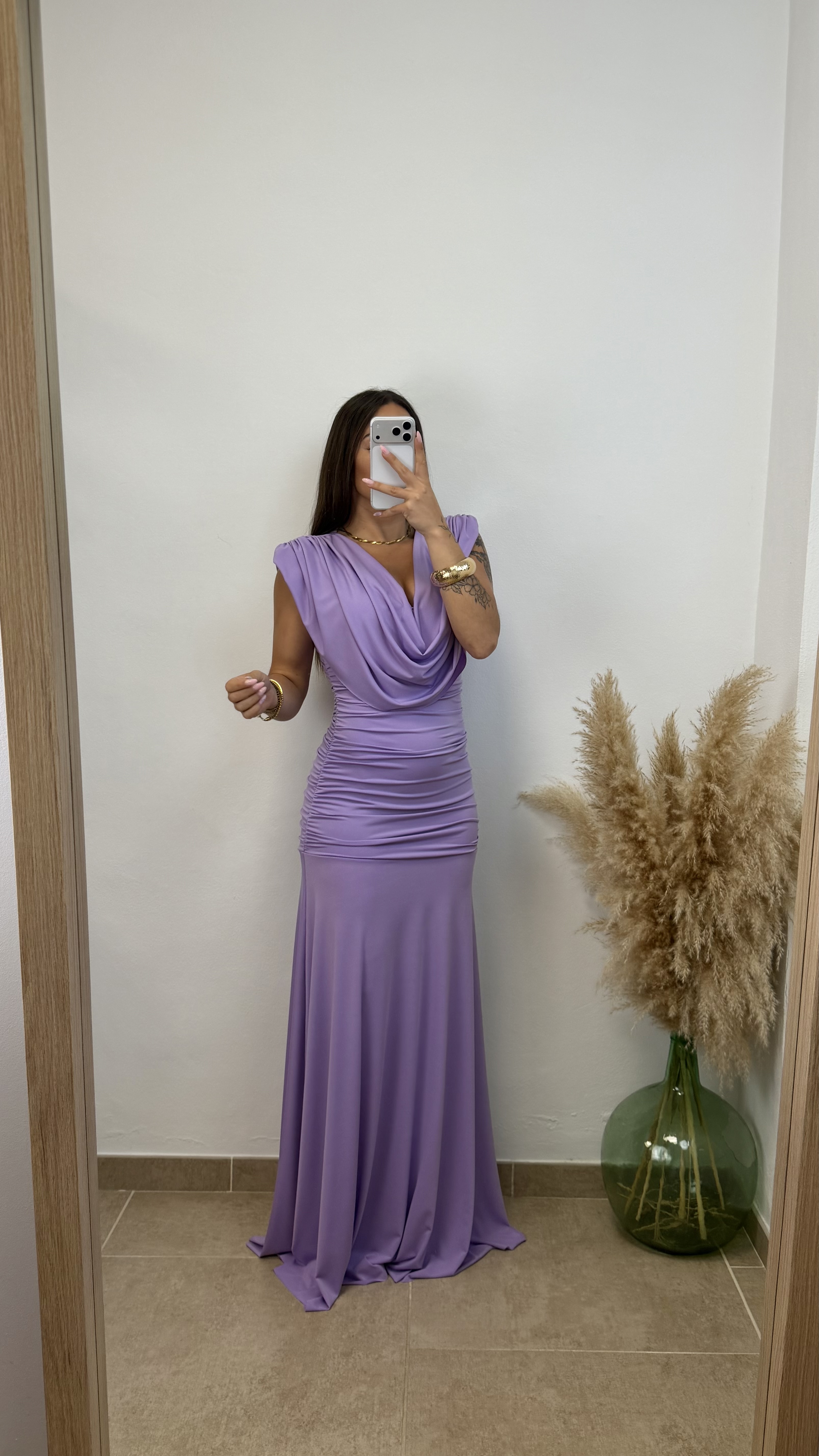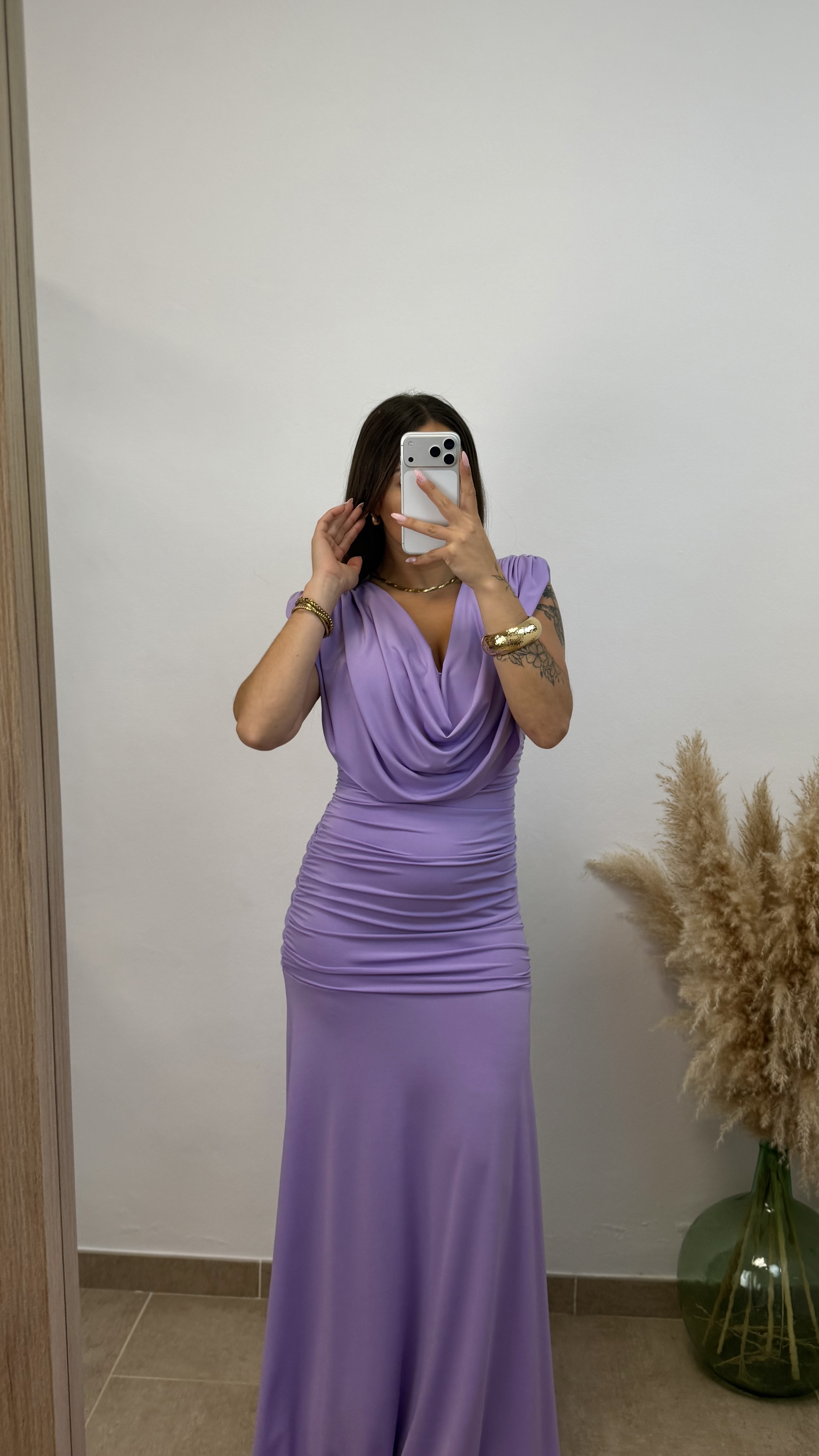 Vestido cuello caído – Lila