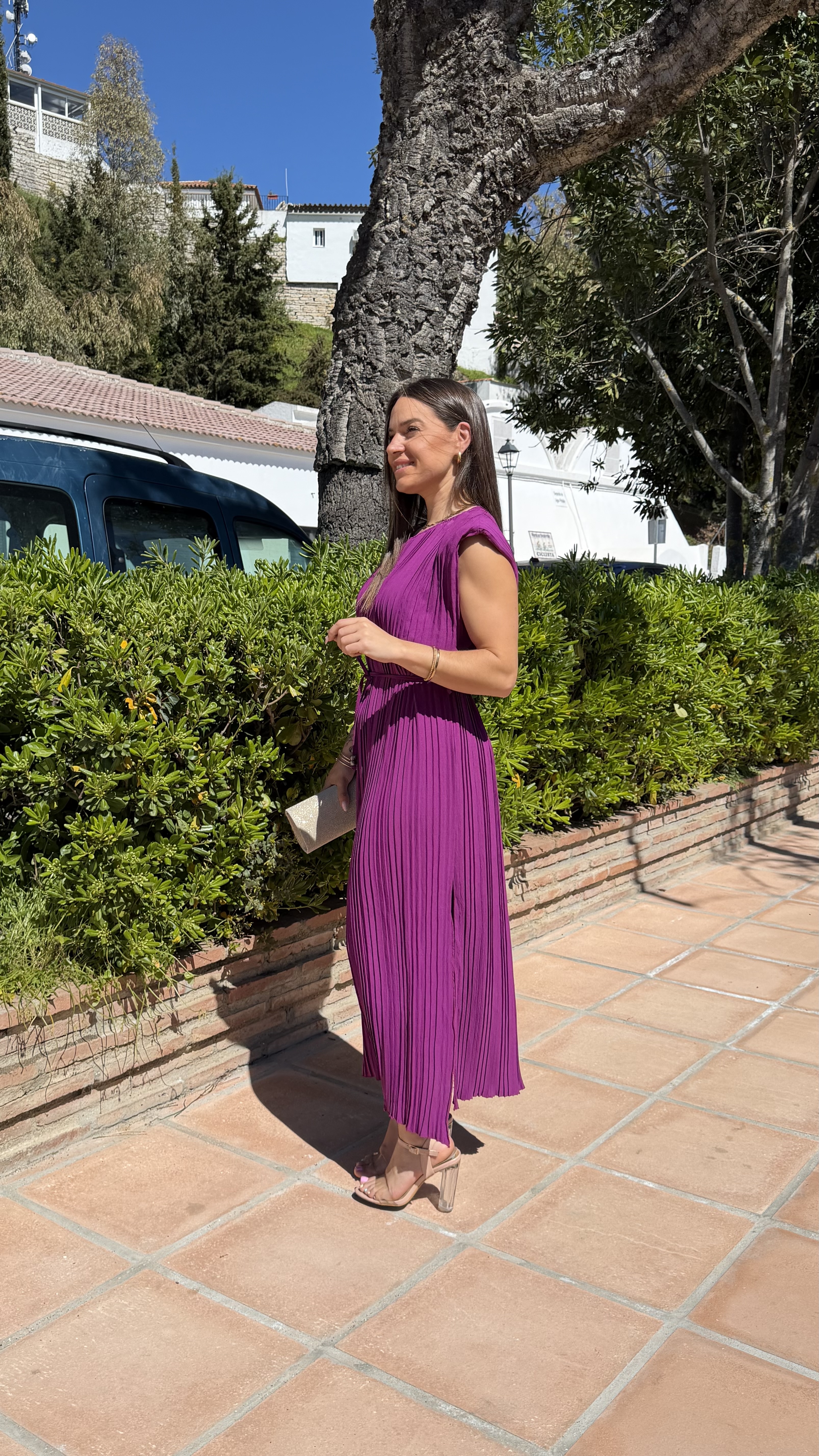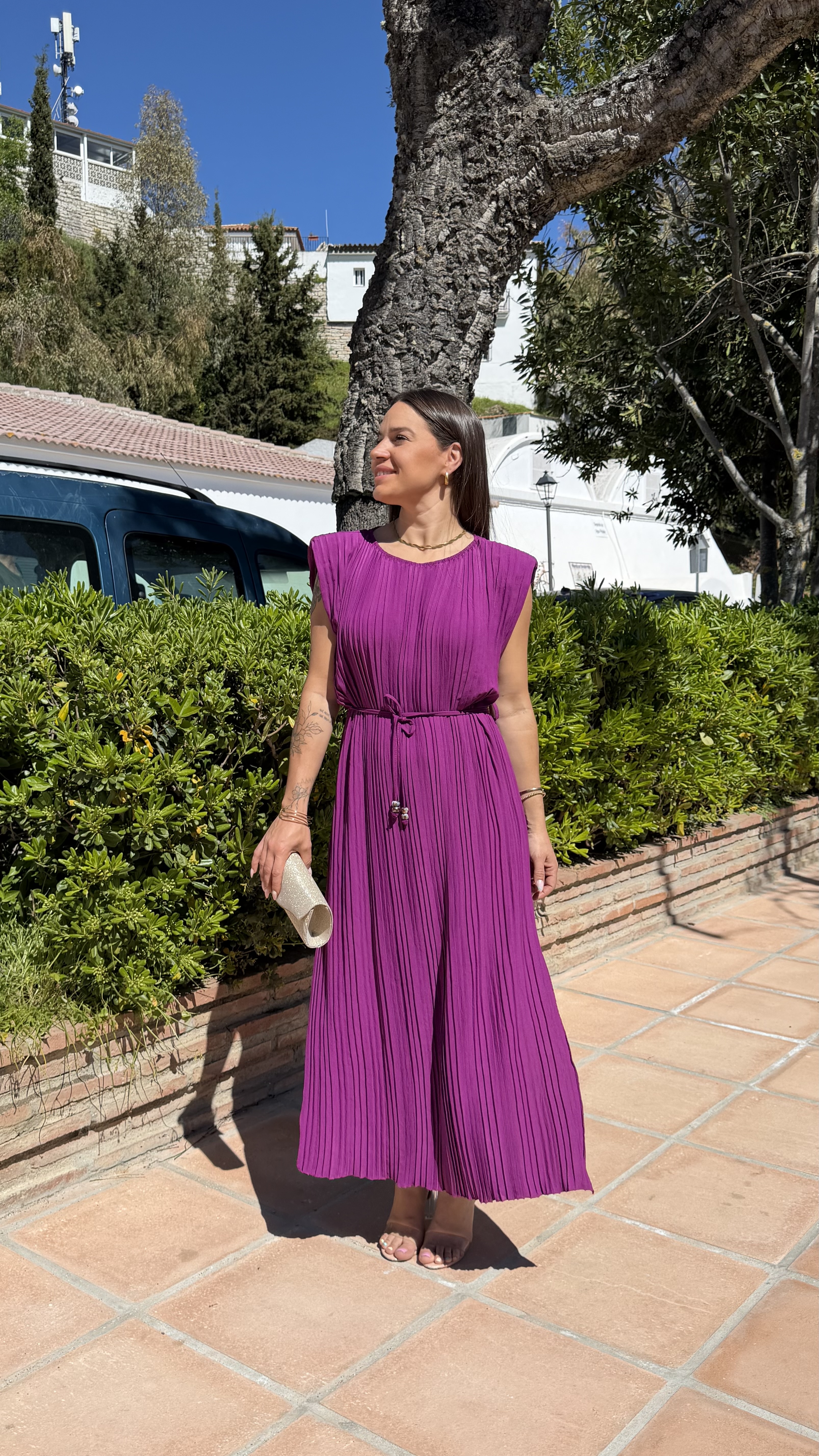 Vestido plisado hombreras – Buganvilla